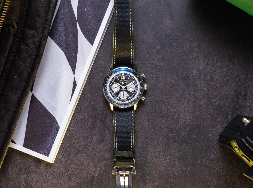 For those who have had a chance to try on the 43mm Navi in person, you’ll know it’s not a small watch. Alongside the diameter, there’s also the 13.69mm thickness and 49.07mm lug-to-lug length, neither of which will play too nicely with smaller wrists. That said, this will also be the first Navitimer in titanium, ever, which is a pretty big deal for such a historically significant reference. It’ll take some bulk off the wrist, but also contributes to the avant-garde engineering feel consistent with Formula 1 racing. Not so sporty is the water-resistance, which is still stuck at 30 metres. Granted, there’s no danger of it being overly exposed in an open cockpit in a place like Spa, which feels like it gets perennial rain, but it is just a bit too low for a watch with such sporty intentions.